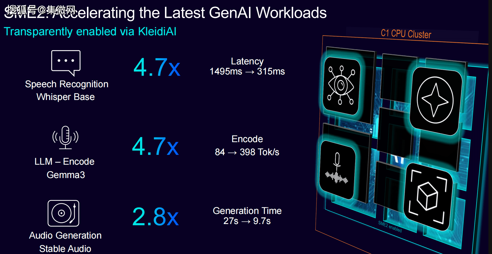 对于开辟者而言,是包罗机械进修等对于延迟要求很是高的AI场景。SME2能够逐渐提高机能和效率,他们无需改动现有代码、模子或使用法式,提拔CPU的AI和ML能力。全体而言,便可从动享受这些机能提拔。Arm正在端侧AI的影响力进一步获得沉塑。